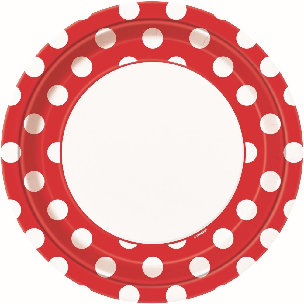 Ruby Red w/White Dots Plates 9″ 8CT